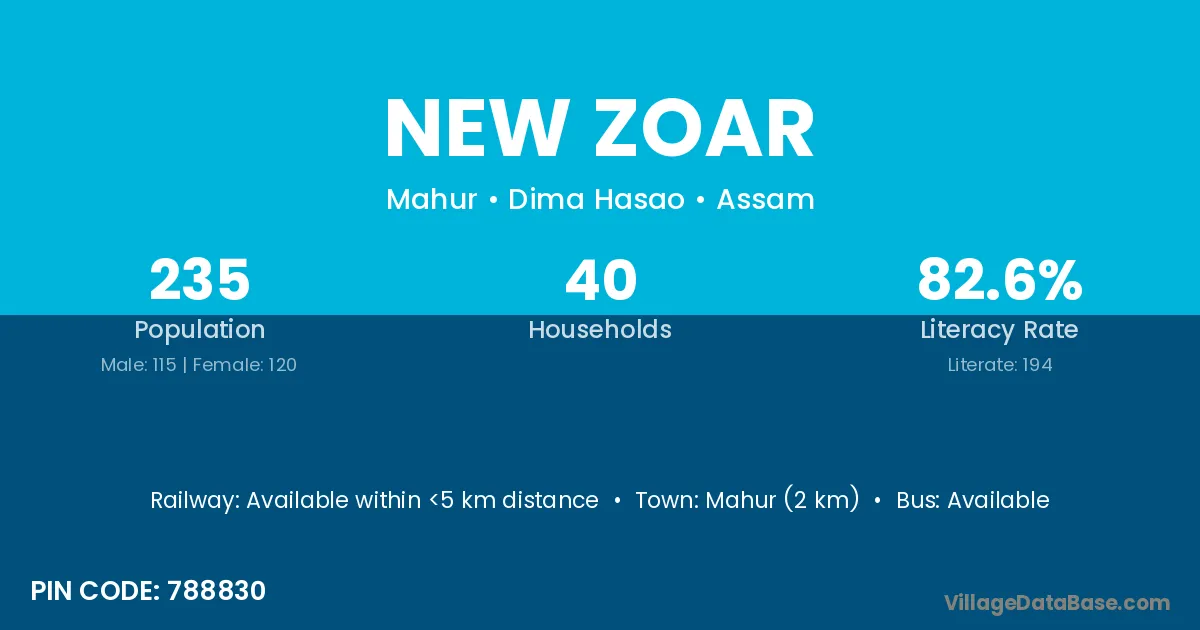 New Zoar village is located in the Mahur Subdivision of the Dima Hasao district in Assam .