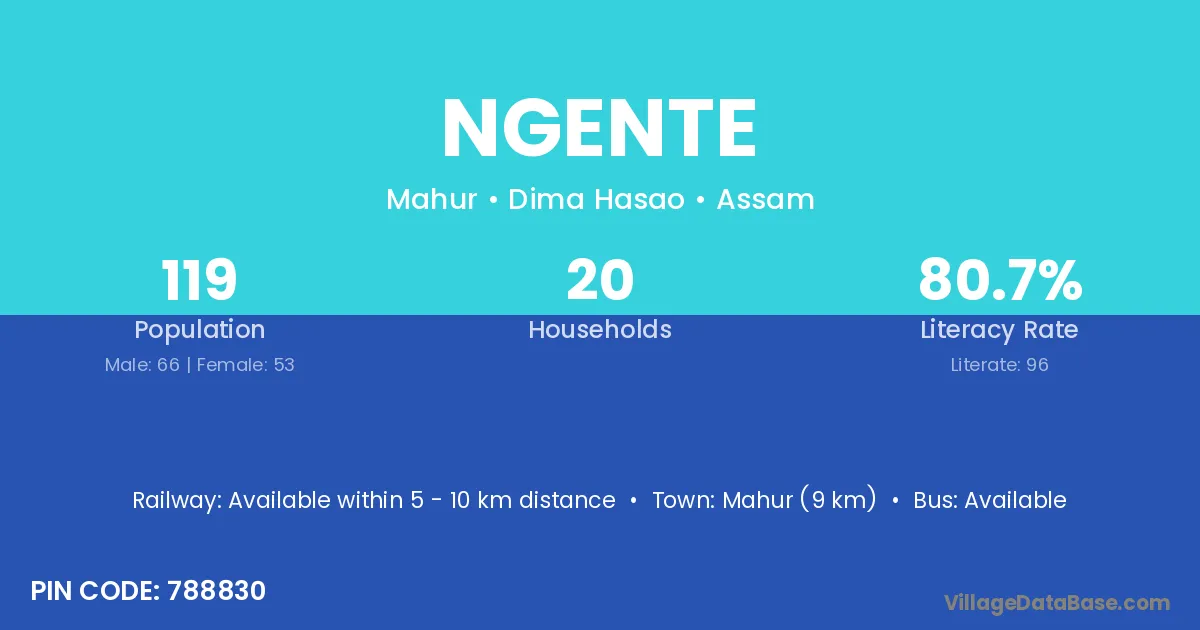 According to Census 2011 information, the village code of Ngente village is 788830.