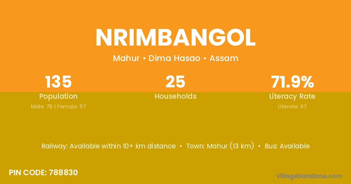 Nrimbangol village is located in the Mahur Subdivision of the Dima Hasao district in Assam .