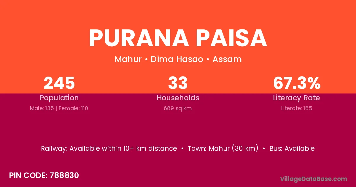 Purana Paisa village is located in the Mahur Subdivision of the Dima Hasao district in Assam .