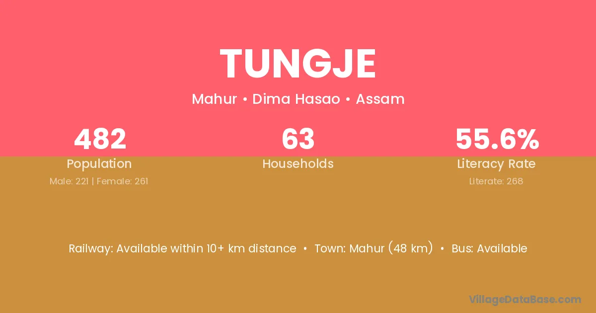 Tungje village has a total population of 482 people, of which 221 are males and 261 are females.