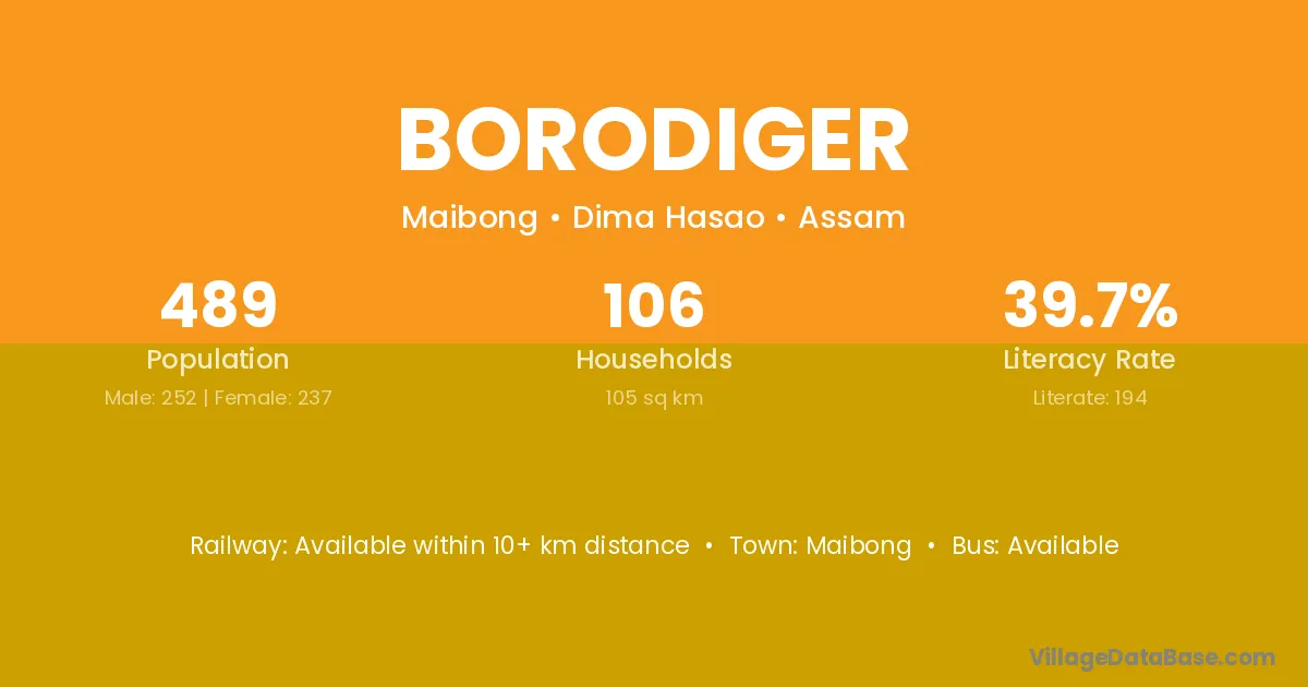 Borodiger village is located in the Maibong Subdivision of the Dima Hasao district in Assam .