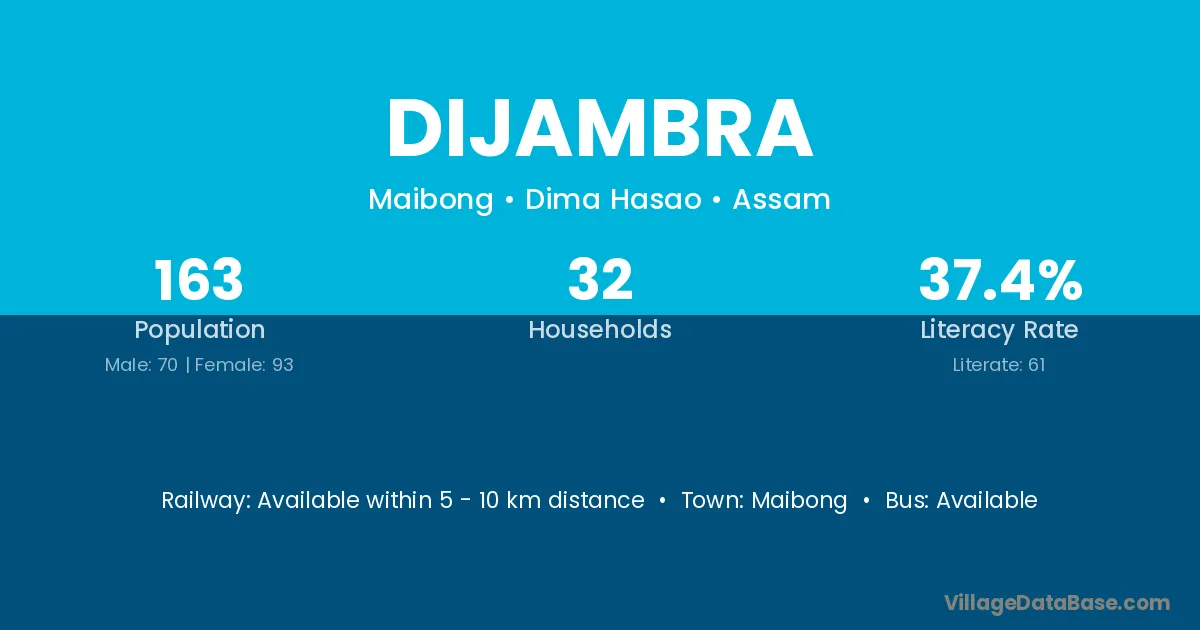 Dijambra village has a total population of 163 people, of which 70 are males and 93 are females.
