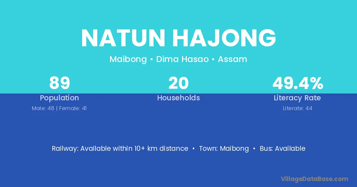 Natun Hajong village has a total population of 89 people, of which 48 are males and 41 are females.