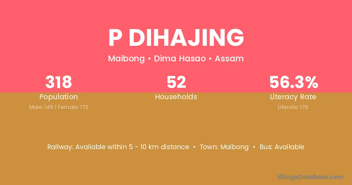 P Dihajing village has a total population of 318 people, of which 145 are males and 173 are females.