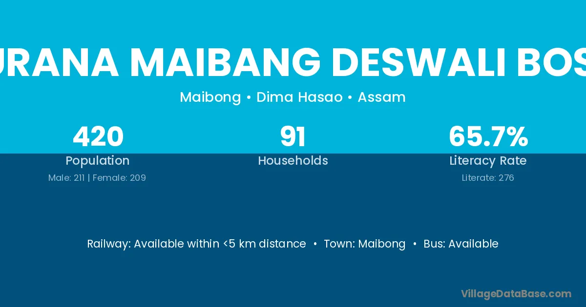 Purana Maibang Deswali Bosti village has a total population of 420 people, of which 211 are males and 209 are females.