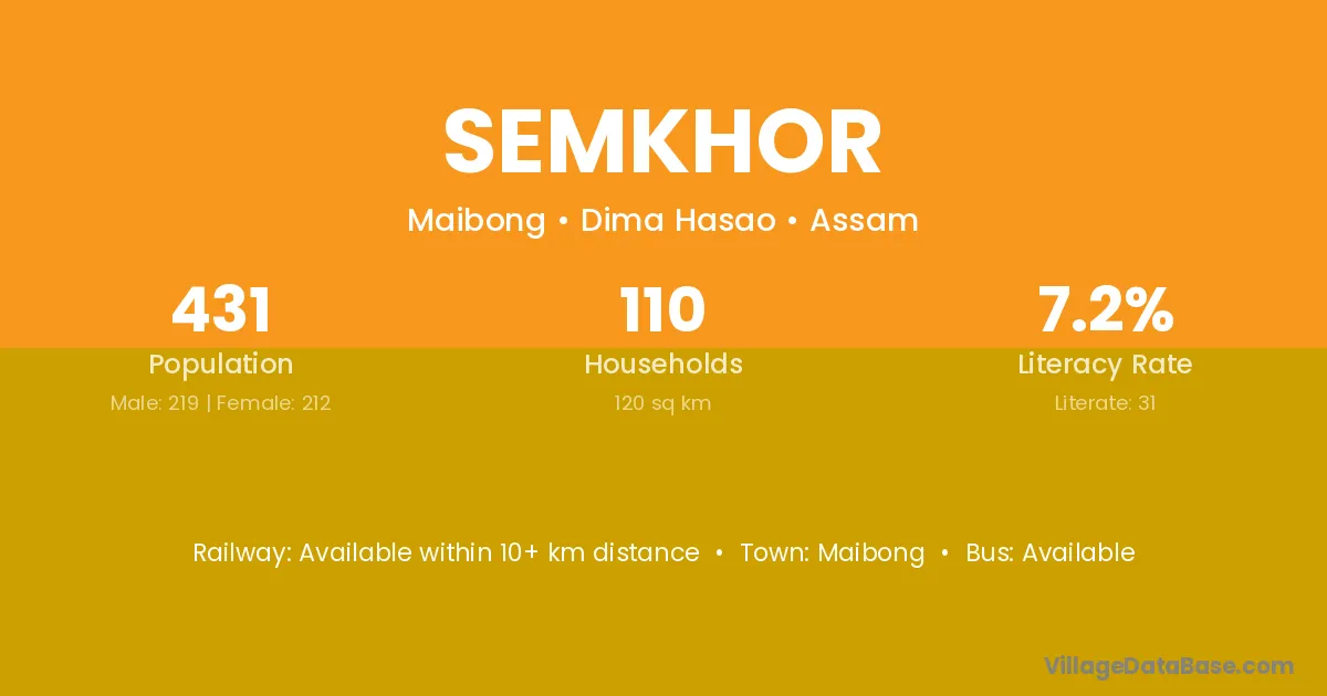 Semkhor village has a total population of 431 people, of which 219 are males and 212 are females.