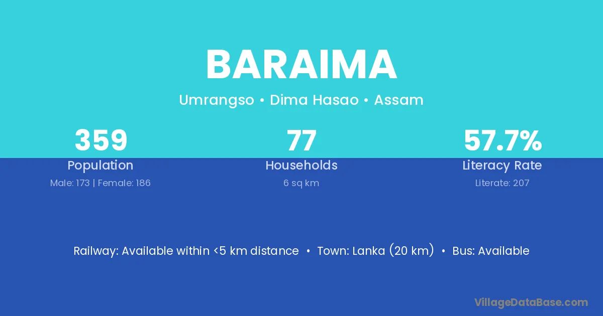 Lanka (20 km) is the nearest town to Baraima village for major economic activities and is located approximately 20 km away.
