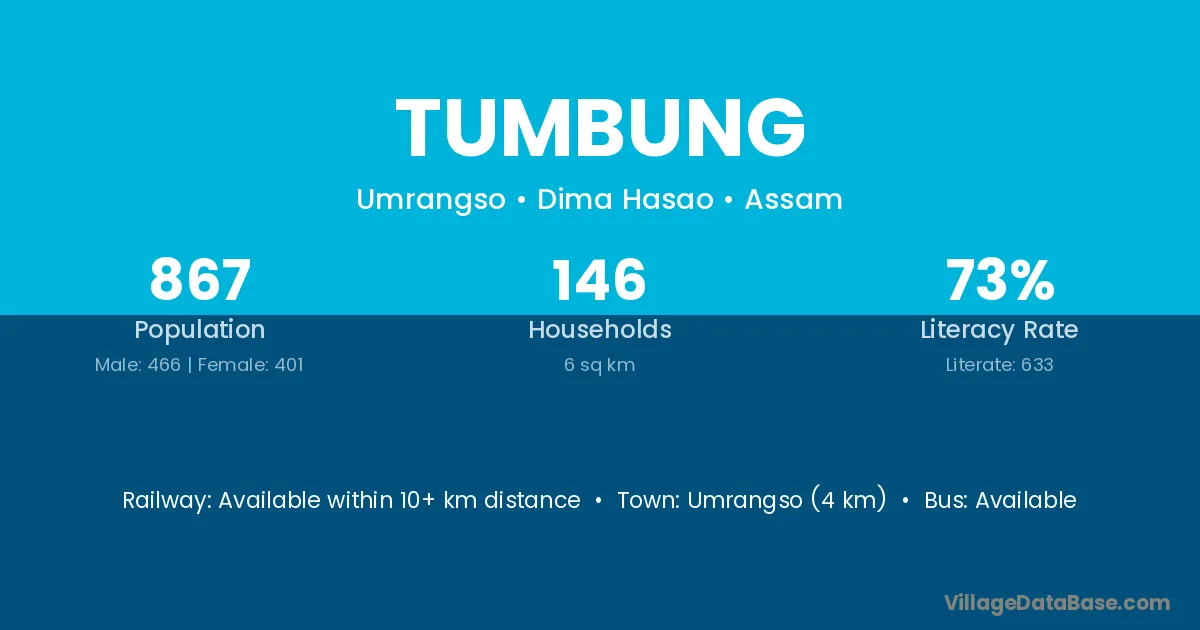 Umrangso (4 km) is the nearest town to Tumbung village for major economic activities and is located approximately 4 km away.
