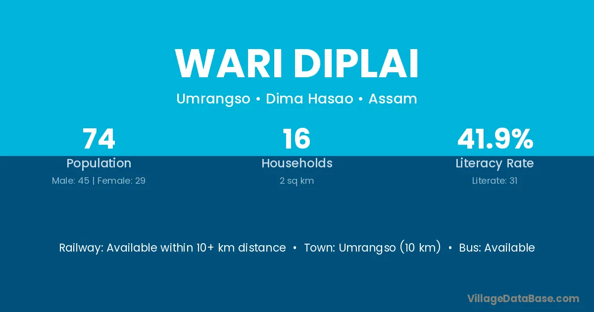 Umrangso (10 km) is the nearest town to Wari Diplai village for major economic activities and is located approximately 10 km away.