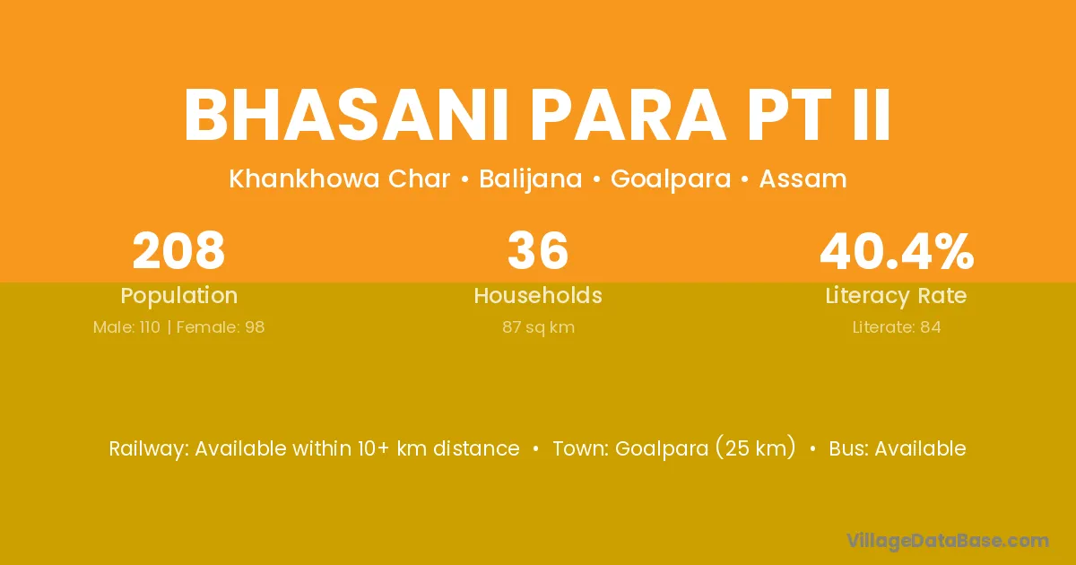Bhasani Para Pt Ii village has a total population of 208 people, of which 110 are males and 98 are females.
