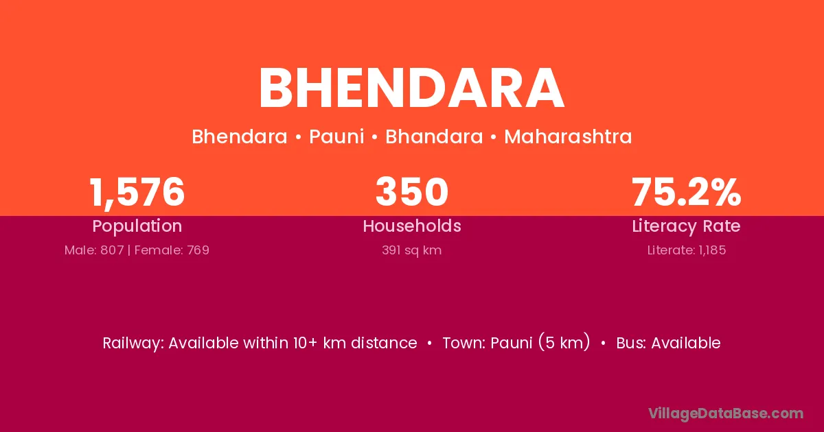 Bhendara village has a total population of 1,256 people, of which 632 are males and 624 are females.