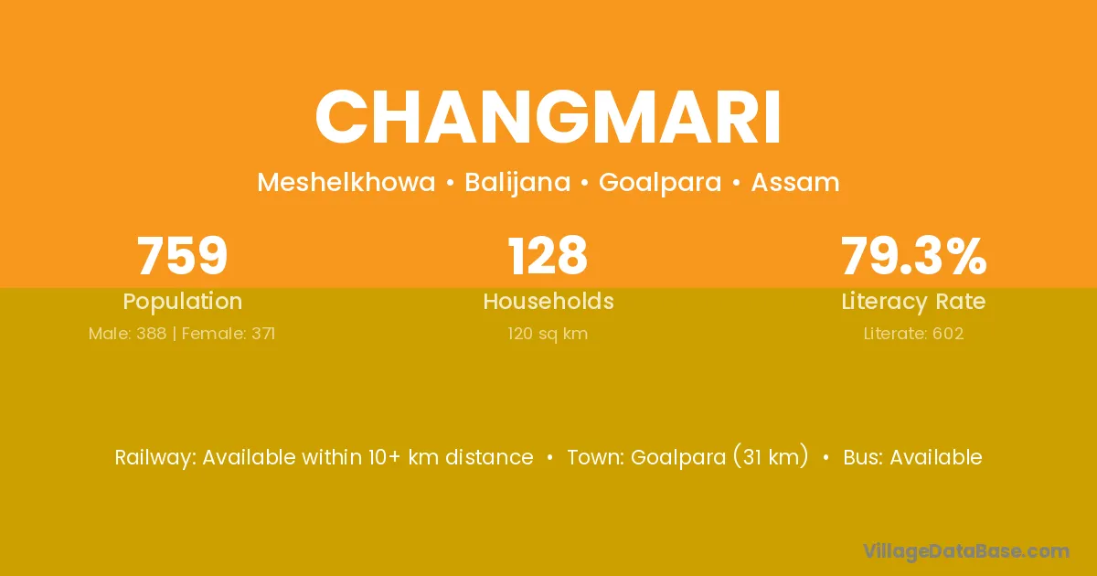 Goalpara (31 km) is the nearest town to Changmari village for major economic activities and is located approximately 31 km away.