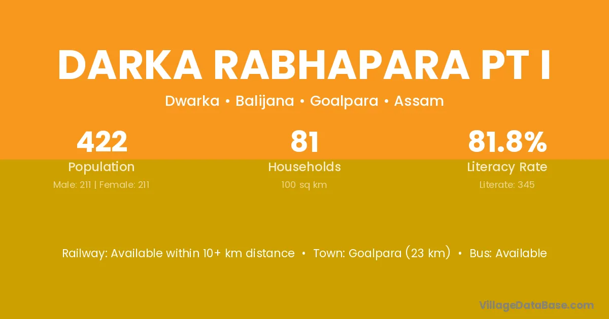 Goalpara (23 km) is the nearest town to Darka Rabhapara Pt I village for major economic activities and is located approximately 23 km away.