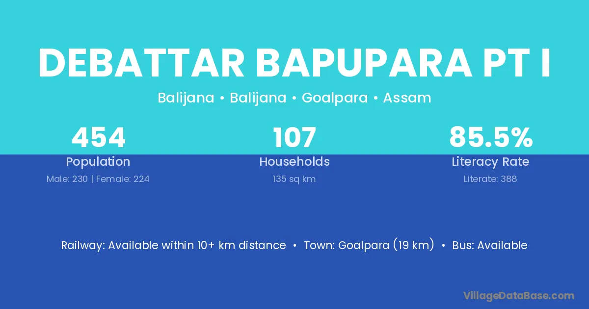 Goalpara (19 km) is the nearest town to Debattar Bapupara Pt I village for major economic activities and is located approximately 19 km away.
