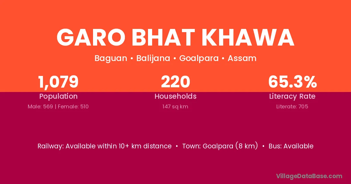Goalpara (8 km) is the nearest town to Garo Bhat Khawa village for major economic activities and is located approximately 8 km away.