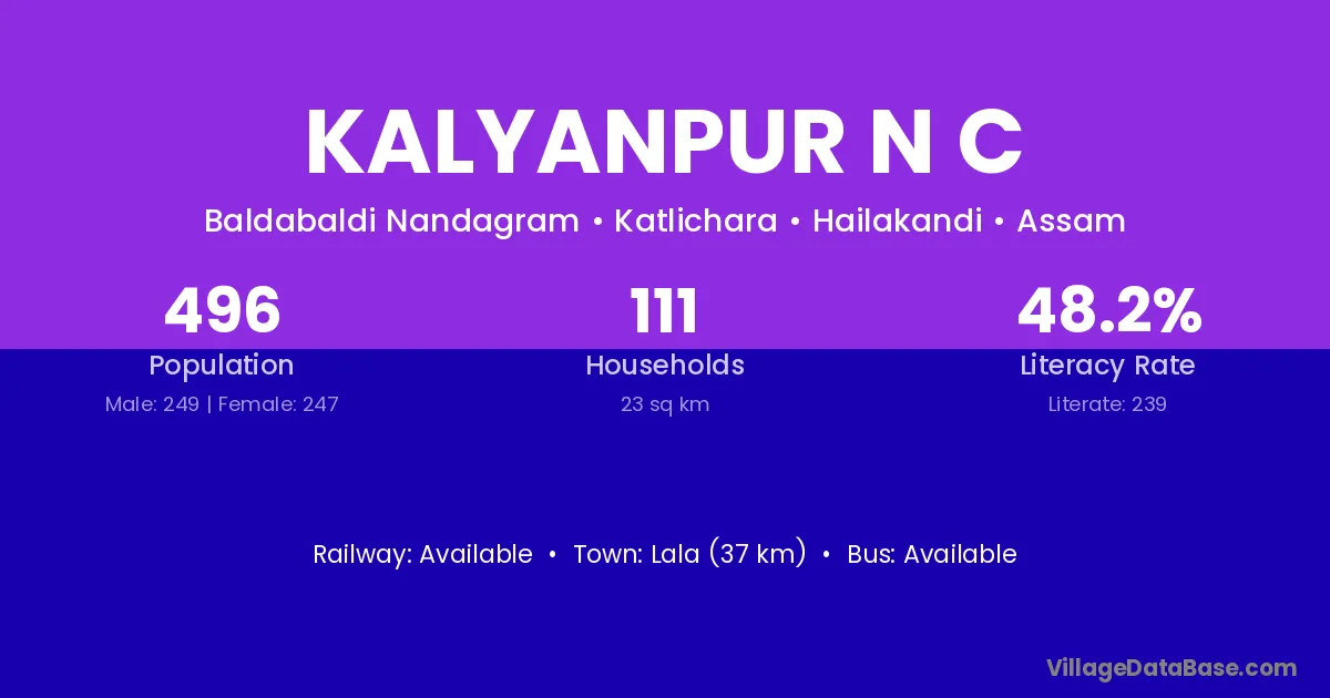 Goalpara (4 km) is the nearest town to Kalyanpur N C village for major economic activities and is located approximately 4 km away.
