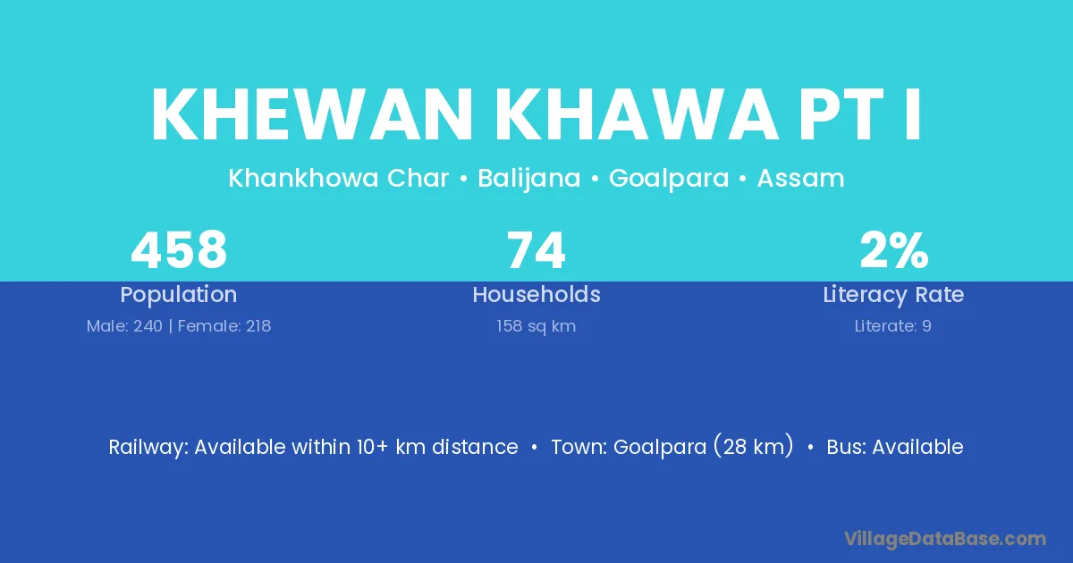 Goalpara (28 km) is the nearest town to Khewan Khawa Pt I village for major economic activities and is located approximately 28 km away.