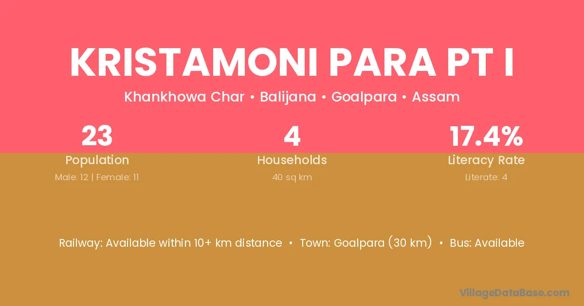 Kristamoni Para Pt I village has a total population of 23 people, of which 12 are males and 11 are females.
