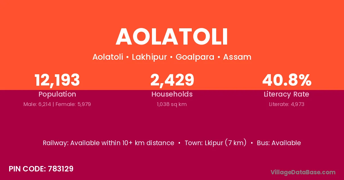 Aolatoli village has a total population of 12,193 people, of which 6,214 are males and 5,979 are females.
