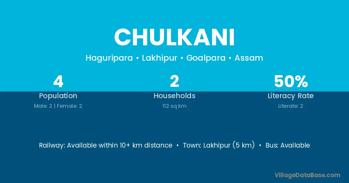 Lakhipur (5 km) is the nearest town to Chulkani village for major economic activities and is located approximately 5 km away.