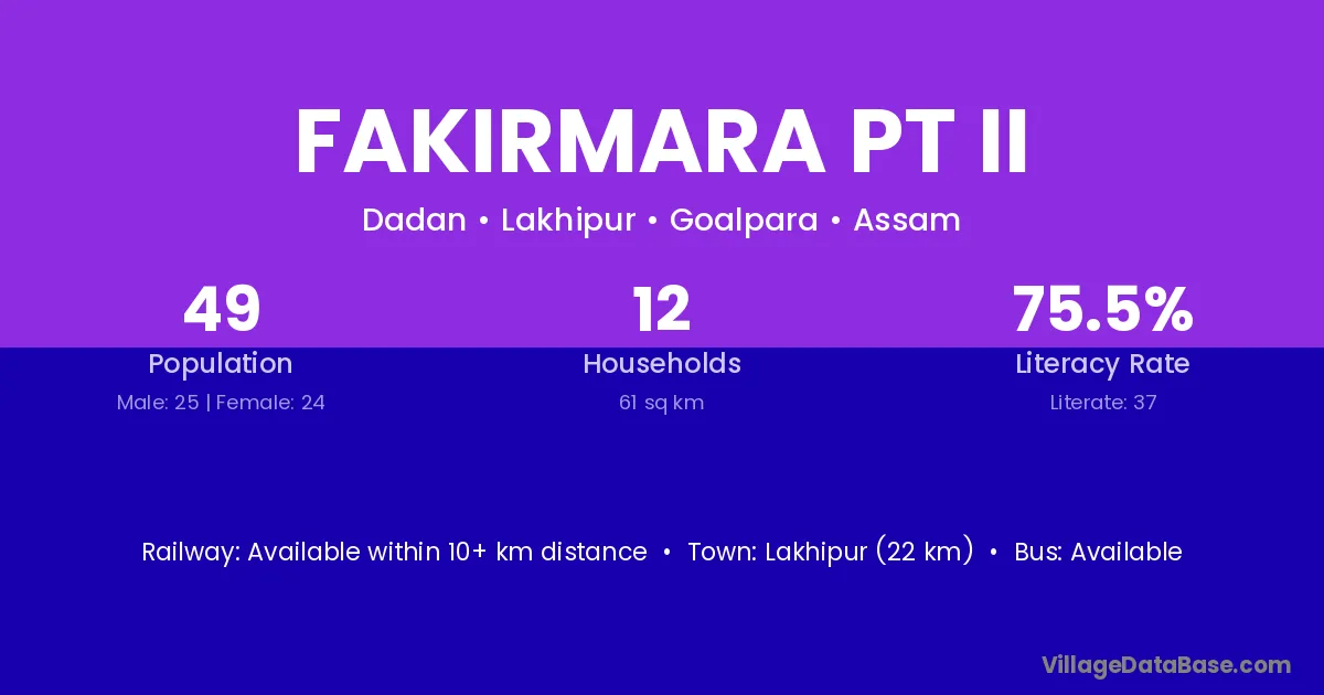 Fakirmara Pt Ii village has a total population of 49 people, of which 25 are males and 24 are females.