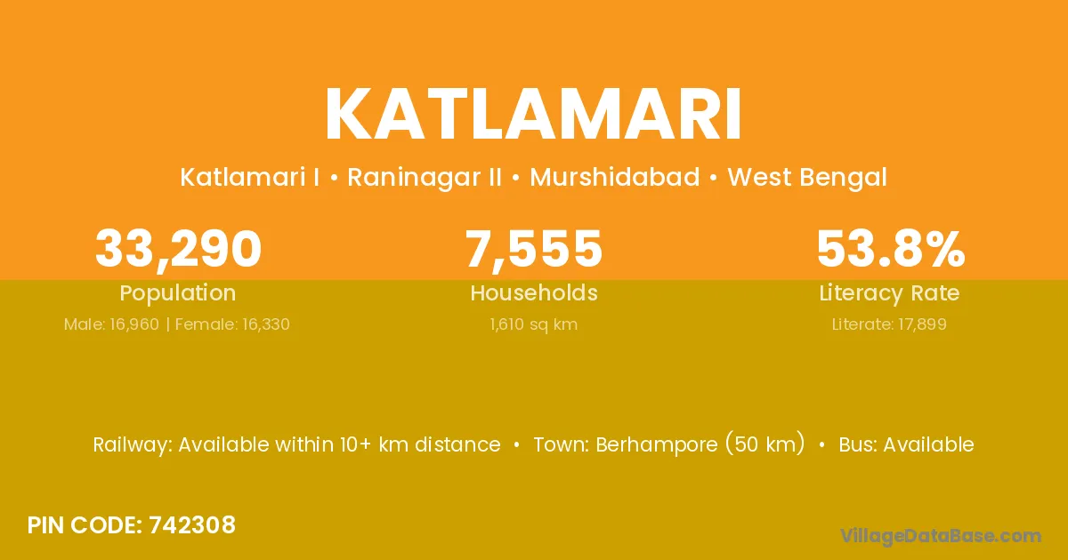 Lakhipur (22 km) is the nearest town to Katlamari village for major economic activities and is located approximately 22 km away.