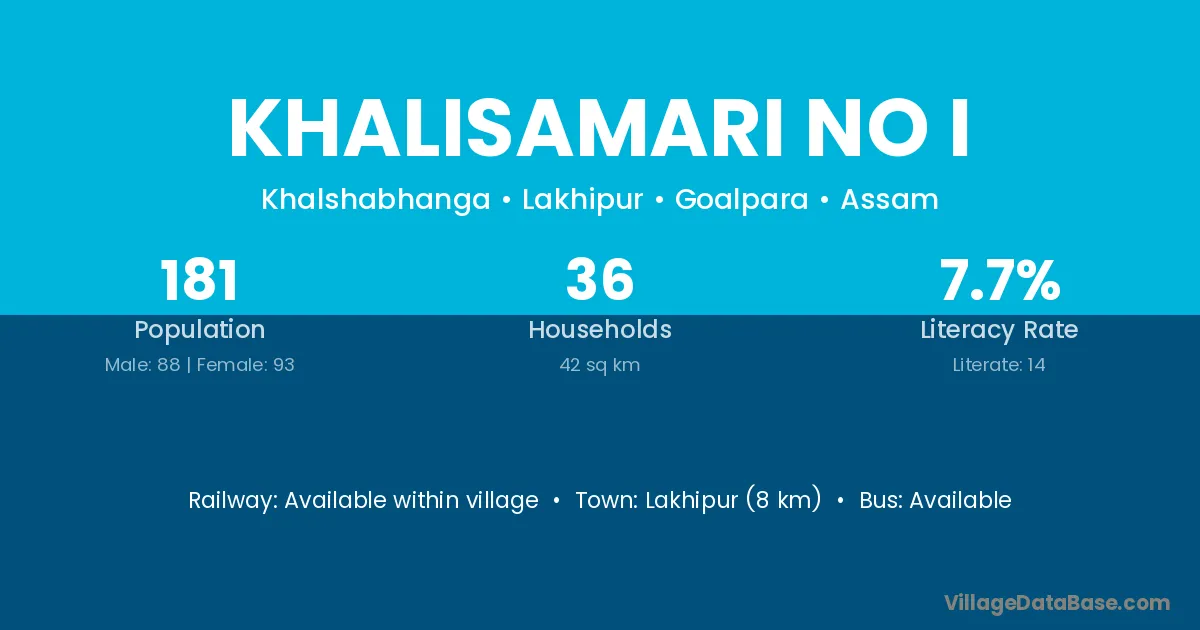 Lakhipur (8 km) is the nearest town to Khalisamari No I village for major economic activities and is located approximately 8 km away.