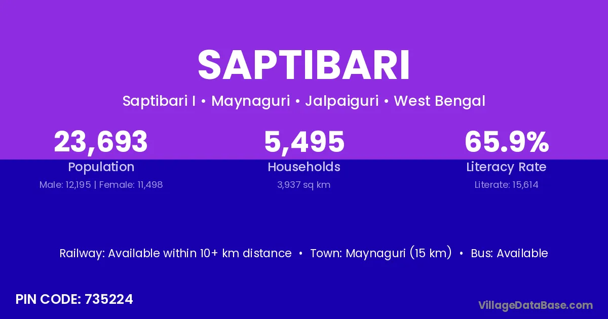 Lakhipur (7 km) is the nearest town to Saptibari village for major economic activities and is located approximately 7 km away.