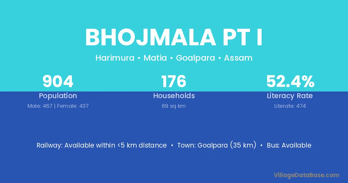Goalpara (35 km) is the nearest town to Bhojmala Pt I village for major economic activities and is located approximately 35 km away.