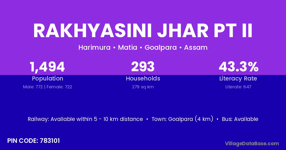 Rakhyasini Jhar Pt Ii village has a total population of 1,494 people, of which 772 are males and 722 are females.