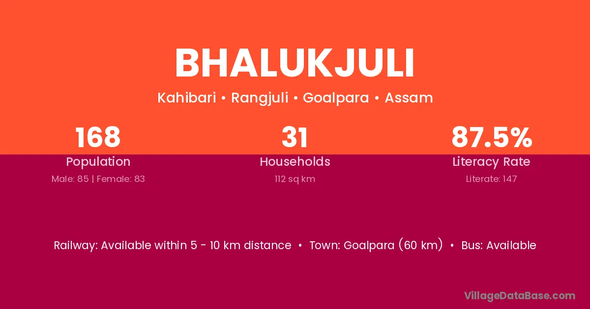 Goalpara (60 km) is the nearest town to Bhalukjuli village for major economic activities and is located approximately 60 km away.