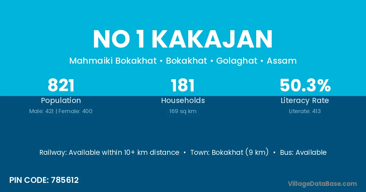 Bokakhat (9 km) is the nearest town to No 1 Kakajan village for major economic activities and is located approximately 9 km away.