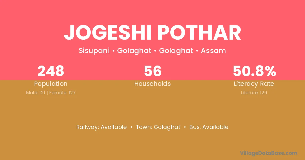 Jogeshi Pothar village has a total population of 248 people, of which 121 are males and 127 are females.