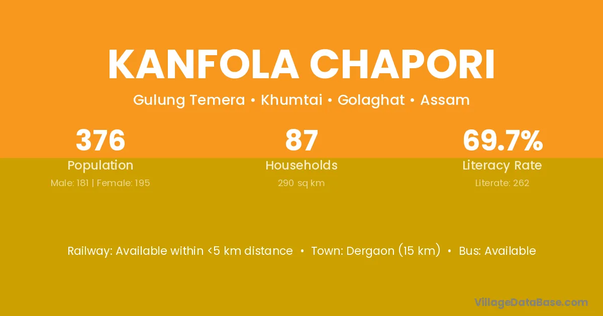 Kanfola Chapori village has a total population of 376 people, of which 181 are males and 195 are females.