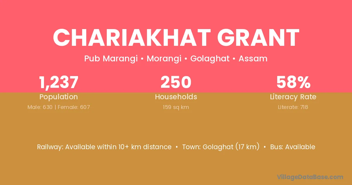 Chariakhat Grant village has a total population of 1,237 people, of which 630 are males and 607 are females.
