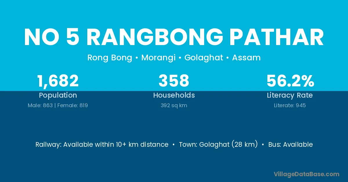 No 5 Rangbong Pathar village has a total population of 1,682 people, of which 863 are males and 819 are females.