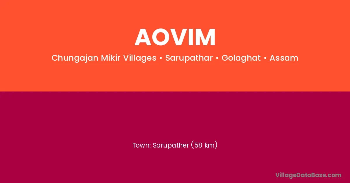 Sarupather (58 km) is the nearest town to Aovim village for major economic activities and is located approximately 58 km away.