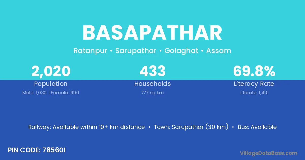 Sarupathar (30 km) is the nearest town to Basapathar village for major economic activities and is located approximately 30 km away.
