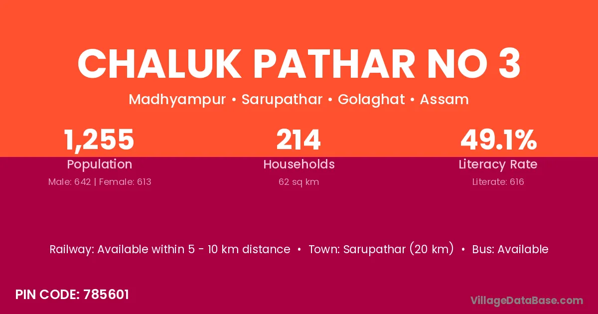 Chaluk Pathar No 3 village has a total population of 1,255 people, of which 642 are males and 613 are females.