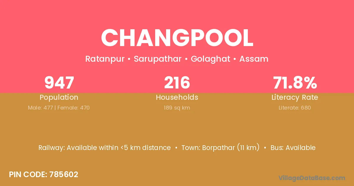 Borpathar (11 km) is the nearest town to Changpool village for major economic activities and is located approximately 11 km away.