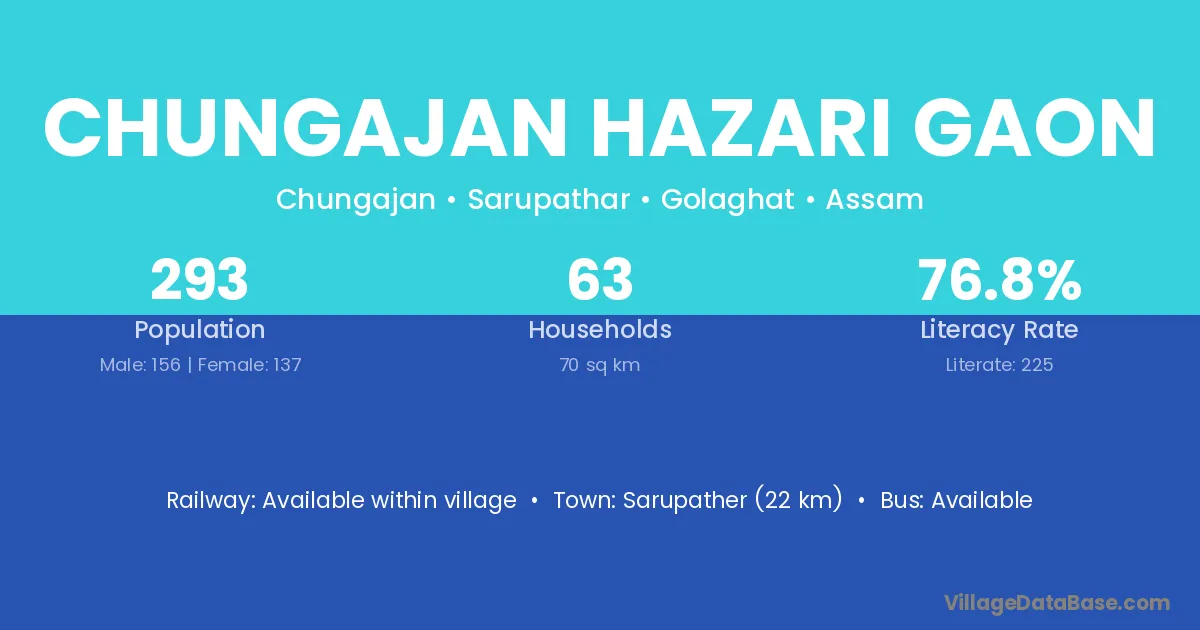 Chungajan Hazari Gaon village has a total population of 293 people, of which 156 are males and 137 are females.