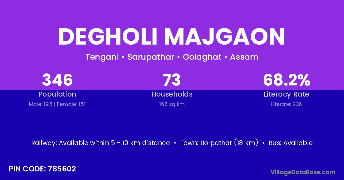 Borpathar (18 km) is the nearest town to Degholi Majgaon village for major economic activities and is located approximately 18 km away.