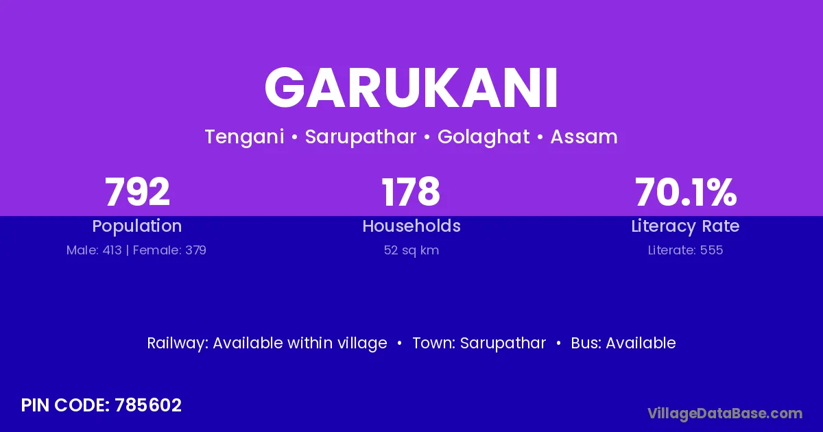 According to Census 2011 information, the village code of Garukani village is 785602.