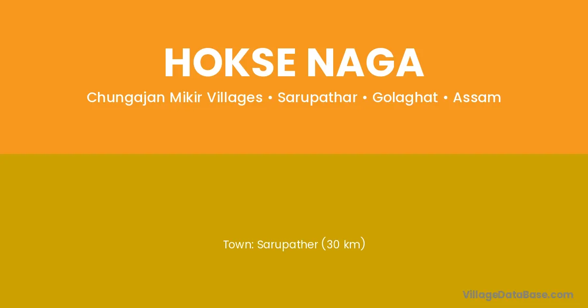 Sarupather (30 km) is the nearest town to Hokse Naga village for major economic activities and is located approximately 30 km away.
