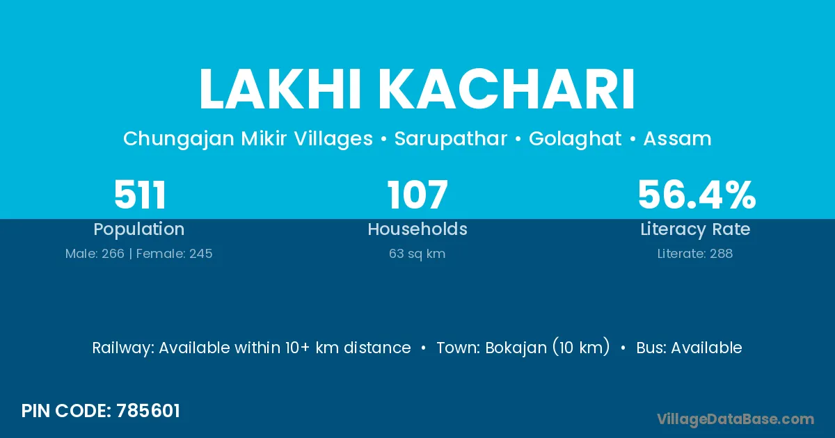 Lakhi Kachari village has a total population of 511 people, of which 266 are males and 245 are females.