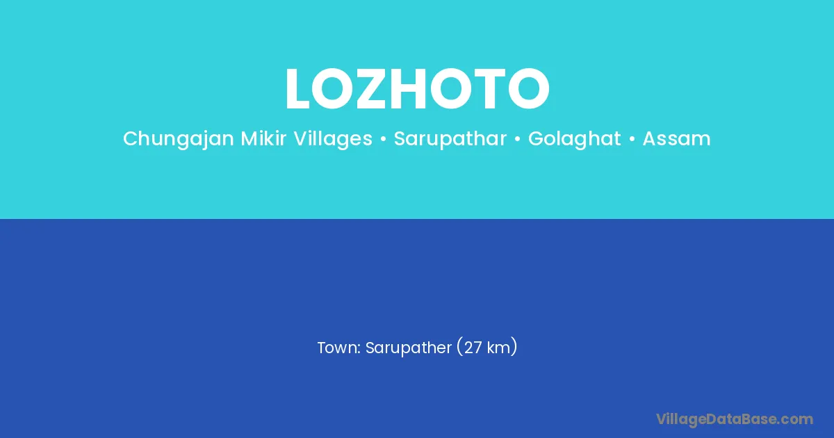 Sarupather (27 km) is the nearest town to Lozhoto village for major economic activities and is located approximately 27 km away.