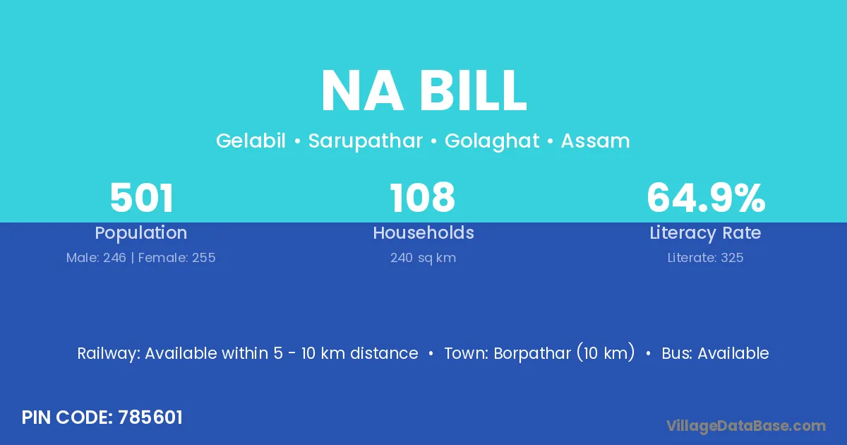 Borpathar (10 km) is the nearest town to Na Bill village for major economic activities and is located approximately 10 km away.