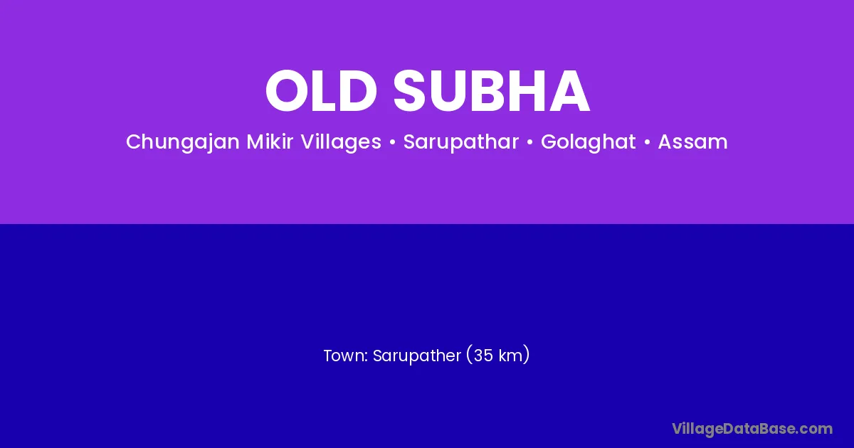 Sarupather (35 km) is the nearest town to Old Subha village for major economic activities and is located approximately 35 km away.