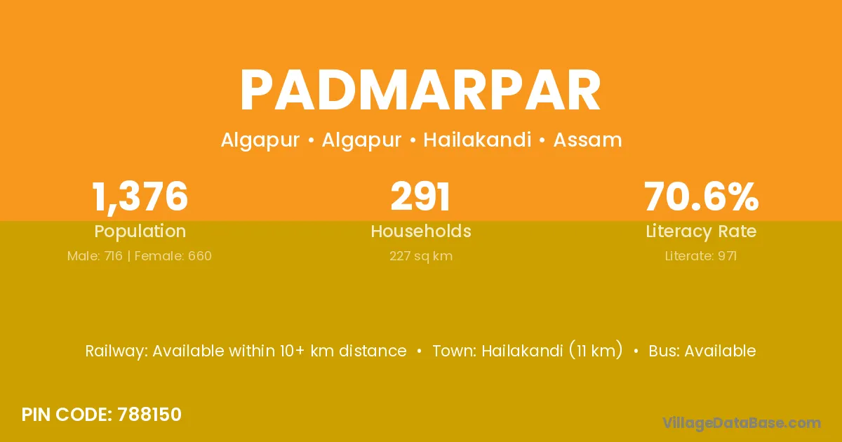 Hailakandi (11 km) is the nearest town to Padmarpar village for major economic activities and is located approximately 11 km away.